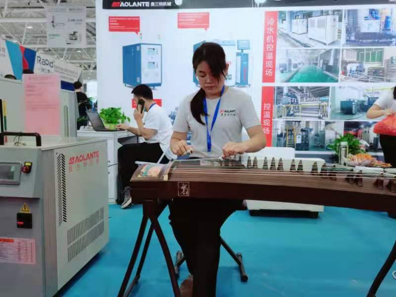 在10點30分左右,深圳市奧蘭特機械業(yè)務(wù)員開始了才藝表演-古箏獨奏,高山流水的美妙琴聲吸引了觀眾的傾聽,表演結(jié)束,我們順勢介紹了深圳奧蘭特機械參展的兩款精品設(shè)備,智能負壓模溫機和速冷速熱高光模溫機。奧蘭特機械的負壓模溫機有著獨特的設(shè)計,特殊的功能,使用的模具、設(shè)備、管道在開裂和裂痕的情況下不影響使用,不會有漏液發(fā)生。我們在現(xiàn)場演示,在設(shè)備循環(huán)過程切開水管不漏液,設(shè)備還運行正常,觀眾嘆為觀止,紛紛咨詢原理及應(yīng)用。負壓模溫機是奧蘭特機械展出設(shè)備賣點,全系標配7寸觸摸屏,CAN2.0通訊接口,可顯示設(shè)備正、負壓力,進出口流量、溫度,觀眾都對負壓模溫機顯示出極大的興趣,留下聯(lián)系方式有待后續(xù)后續(xù)溝通。