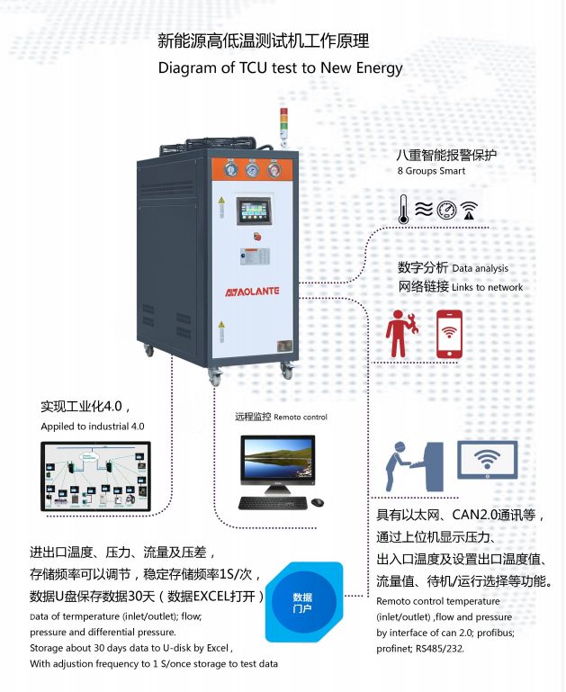 新能源汽車動(dòng)力電池液冷測(cè)試系統(tǒng)功能描述: